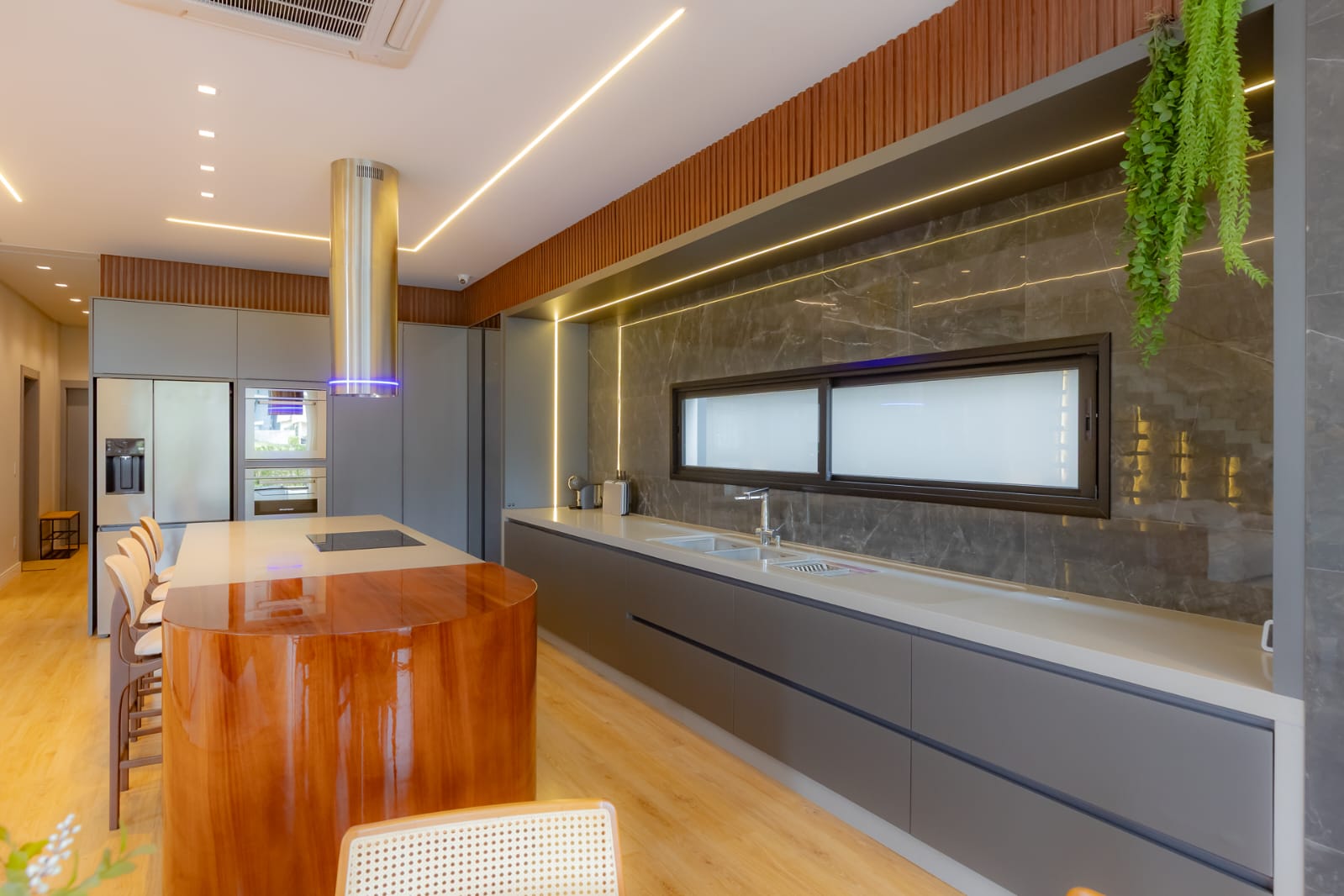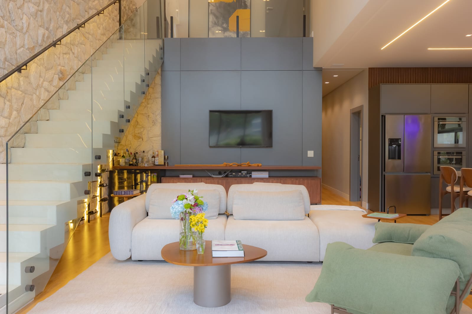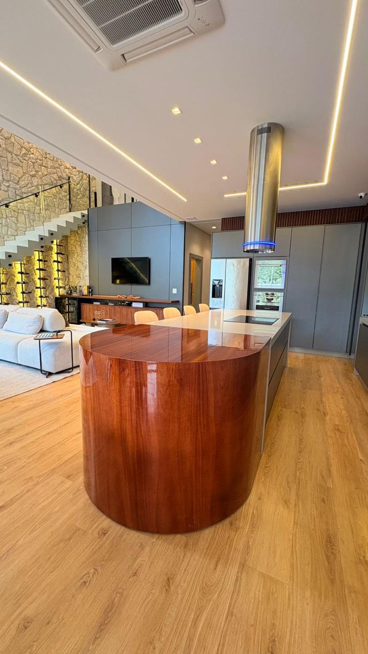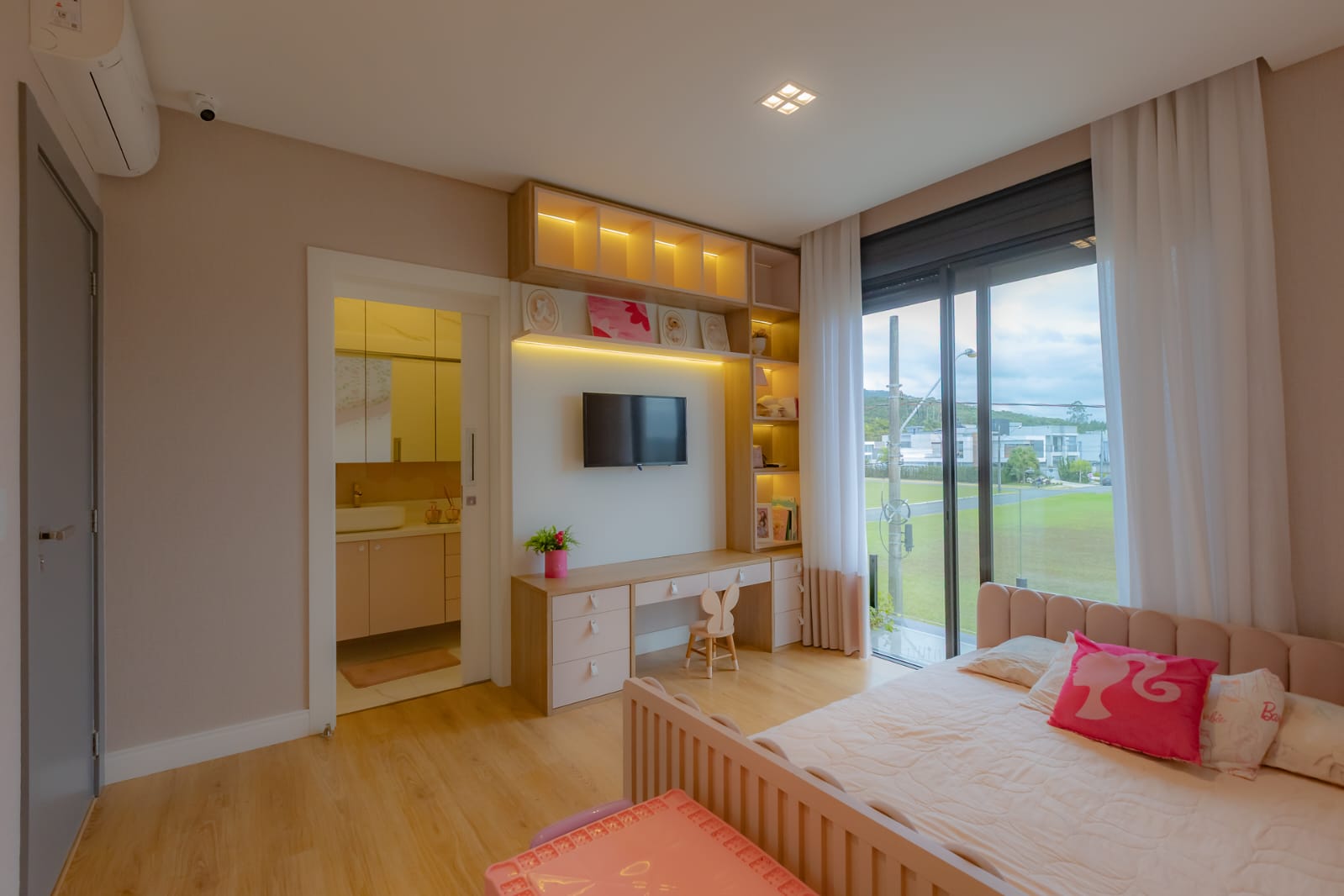 Casa belíssima no Caledônia, pronta pra morar! 100% mobiliada e equipada com altíssimo padrão! 465 m² de construção. Living amplo, integrado, pé direito duplo belíssimo. 4 suítes, sendo 1 master com banheira de imersão e closet ( 1 delas no primeiro pavimento). 1 sala de cinema com banheiro (pode vir a ser a quinta suíte). Área gourmet com churrasqueira a carvão e forno de pizza à lenha, para aproveitar bons momentos em família. Área externa com piscina. Energia solar. Carregador pra carro elétrico. Casa de esquina, ótima localização no condomínio!