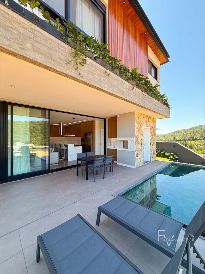 Casa recém entregue no Colinas de Camboriú! Toda mobiliada, equipada e decorada. 330 m² de construção. 4 suítes, sendo uma no pavimento térreo. Suíte master belíssima, com closet, hidromassagem, duas duchas e duas cubas. Privacidade e conforto! Home office no pavimento superior (pode ser sala de tv íntima) Lavabo social e lavabo externo. Espaço gourmet com churrasqueira a carvão num ambiente super aconchegante e com vista lindíssima, para construir boas memórias em família. Piscina aquecida com borda infinita, um charme. Portas Trada de alta qualidade. Esquadrias com vidro laminado duplo. Viva no bairro planejado mais desejado da região, com uma infraestrutura completa, contato direto com a natureza e uma localização privilegiada.