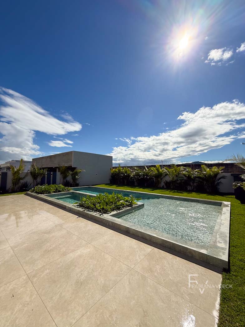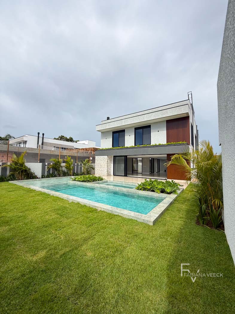 532,42 m² de área construída. 675 m² de terreno. Persianas automatizadas nas suítes. Telas mosquiteiros. Espera para placa solar Lavabo. Banheiro completo no gourmet 5 suítes, sendo 1 master com aproximadamente 60 metros. Lounge place. Piscina com prainha. Hidro com motor independente. Espera para carregador de carro elétrico. Armário na garagem. Garagem para comportar 6 carros.