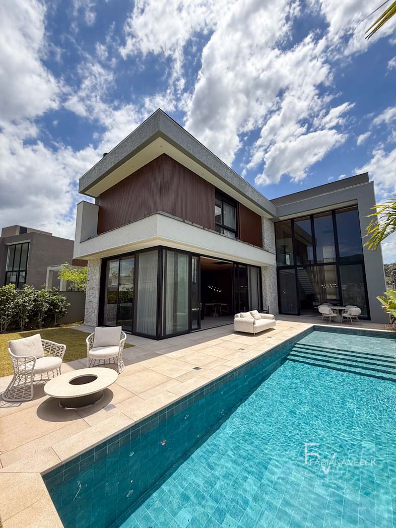 Uma casa planejada e construída com muita sofisticação e altíssimo padrão de materiais e acabamentos. 560 m² de terreno. 470 m² de área construída. 3 suítes, sendo uma master com closet, banheira de hidro e banheiro todo em Mármore Travertino. 1 closet a parte, que pode vir a ser um dormitório ou espaço para home office. Jardim delicioso com piscina e gramado ao lado de uma área gourmet completa, para aproveitar bons momentos em família. Toda mobília assinada ( Jader Almeida, entre outras assinaturas). Marcenaria impecável Dell Anno. Pé direito duplo belíssimo, living integrado. Parede do living em pedra Moledo natural. Teto, escada e piso do segundo pavimento em madeira natural. Porta Cinex, imponente e sofisticada. Despensa. Acesso na porta principal com reconhecimento facial. Luxo, conforto e uma arquitetura atemporal. Casa impecável!
