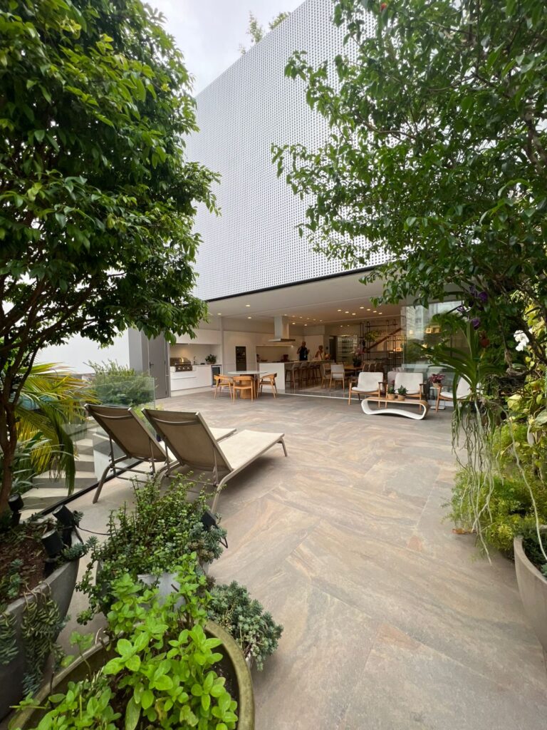 Living integrado com pé direito de 6 metros de altura. Lavabo, Espaço gourmet externo com churrasqueira ã carvão automatizada.